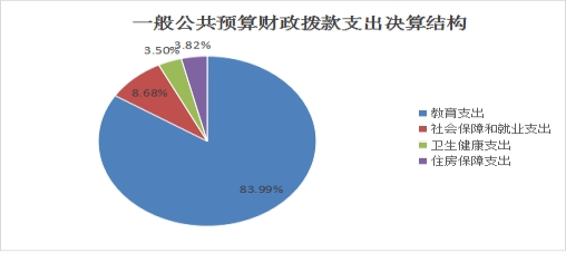 2024年度一般公共预算财政拨款支出10512.89万元,主要用于以下方面:一般公共服务支出0万元,占0%;教育支出8830.13万元,占83.99%;科学技术支出0万元,占0%;文化旅游体育与传媒支出0万元,占0%;社会保障和就业支出913.11万元,占8.68%;卫生健康支出367.95万元,占3.5%;住房保障支出401.7万元,占3.82%。