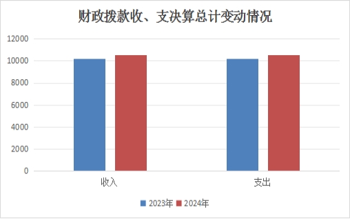 2024年度财政拨款收、支总计均为10512.89万元。与2023年度相比,财政拨款收、支总计各增加345.83万元,上升3.4%。主要变动原因是绩效工资、养老保险、其他社会保障缴费收入支出增加。