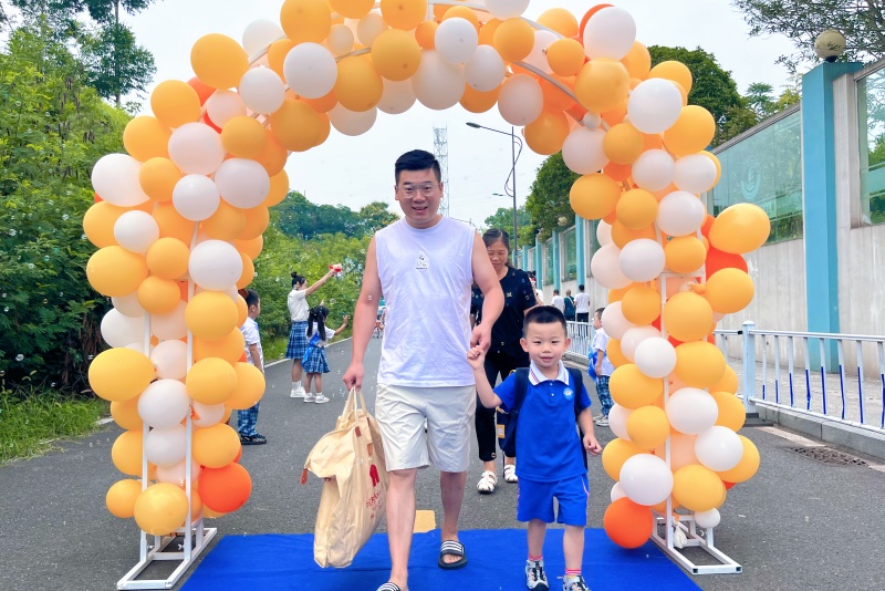 这场充满童趣与仪式感的开学典礼,从清晨的入园时刻就已活力满满。气球彩虹拱门绚烂夺目,音乐泡泡雨漫天飞舞,还有趣味蔬菜游戏、幸运盲盒以及纸飞机张贴签到等环节,孩子们在多样互动中,带着对新学期的期待欢快入园。